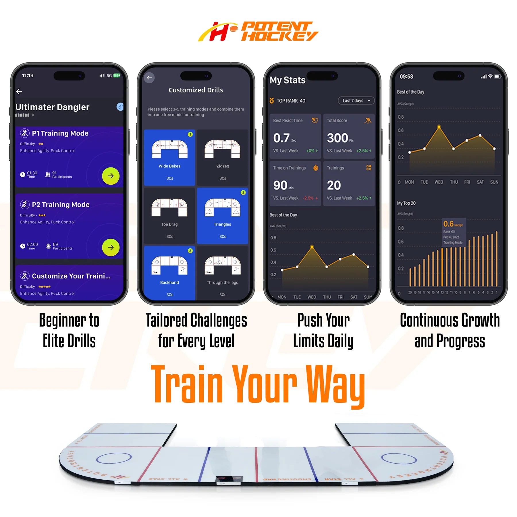 Systemet tilpasser seg ditt nivå og tilbyr intelligente øvelser via appen Dangle Elite, som gjør treningen morsom, utfordrende og effektiv – enten du er nybegynner eller elitespiller.